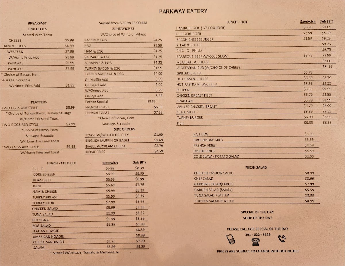 For those planning events, Parkway Eatery also provides Catering Available, ensuring that their delicious offerings can be enjoyed on a larger scale. With such a diverse and well-priced menu, it's clear why Parkway Eatery is a go-to spot for breakfast and lunch in Silver Spring.